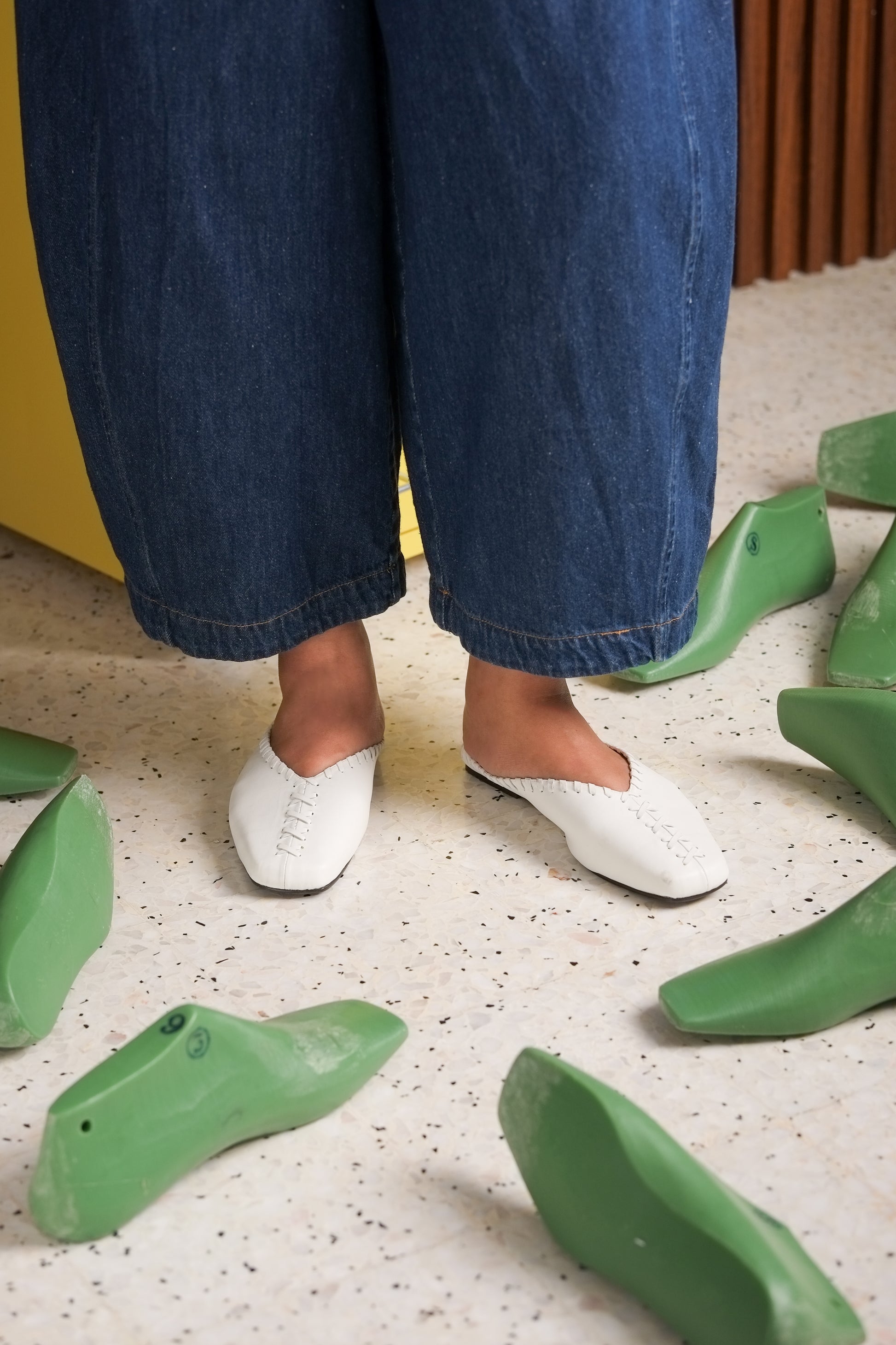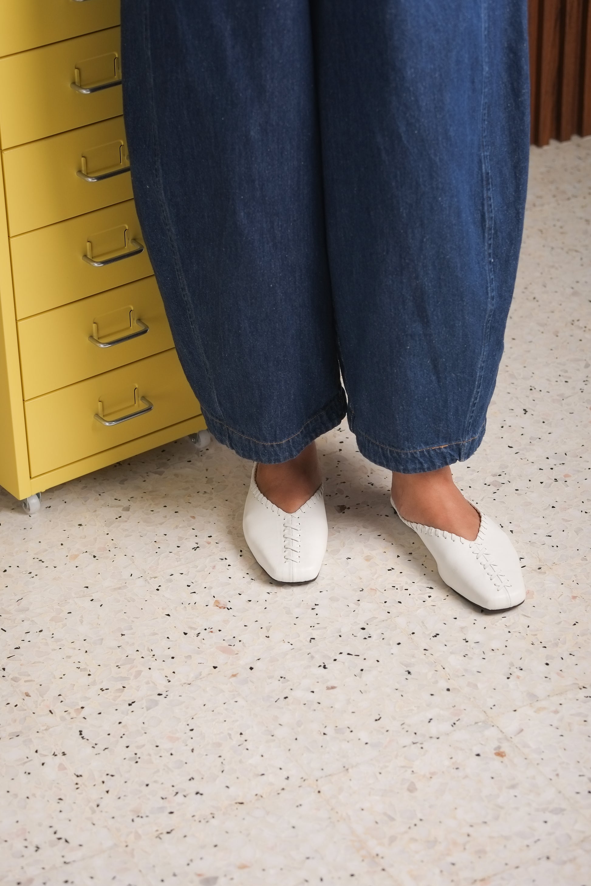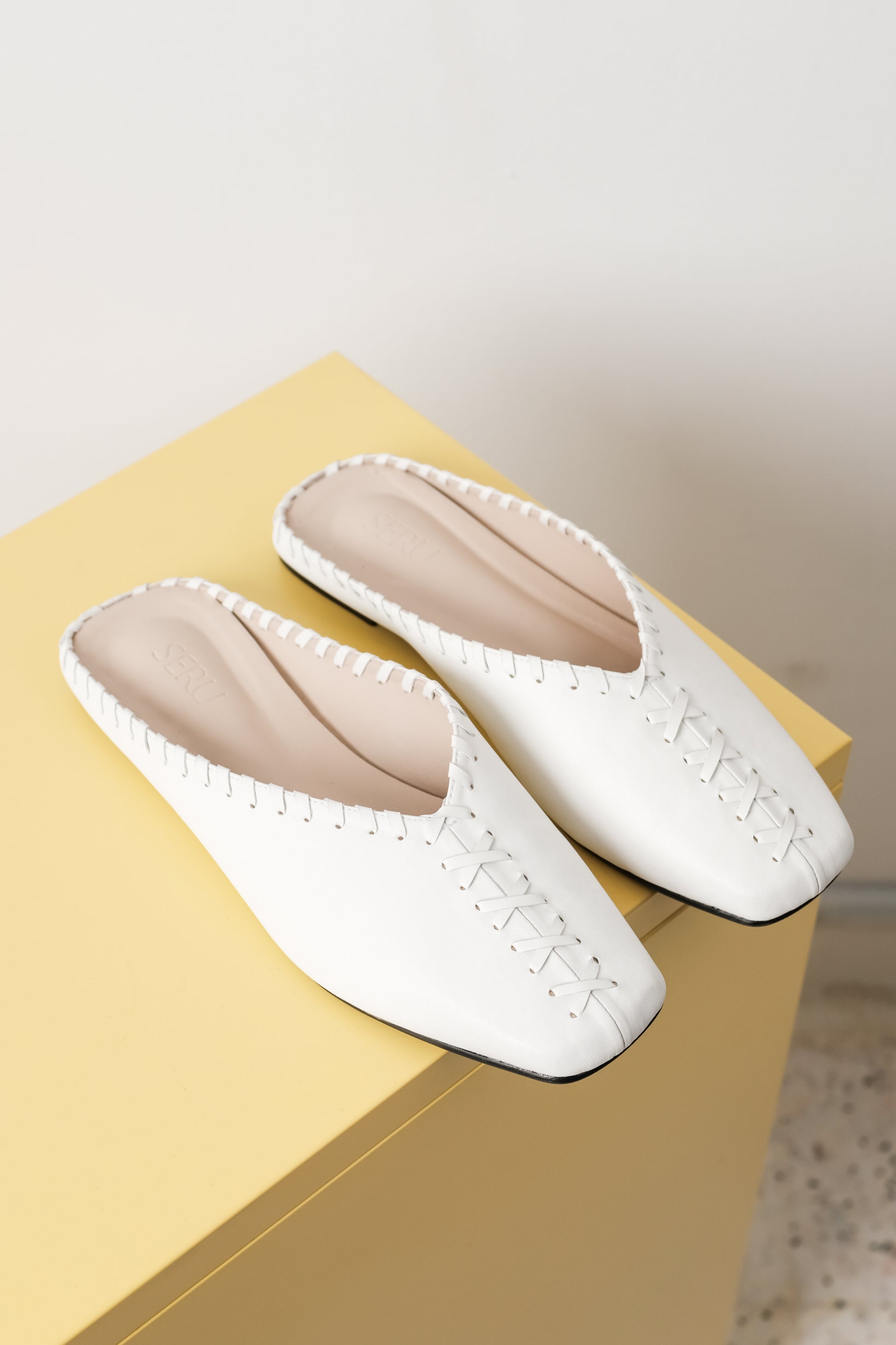 Inès is a flat mule with woven detailing that gives it a touch of character while keeping the design simple and wearable. Inès in Moon comes in a clean white shade that goes with just about everything, making it an easy everyday choice.