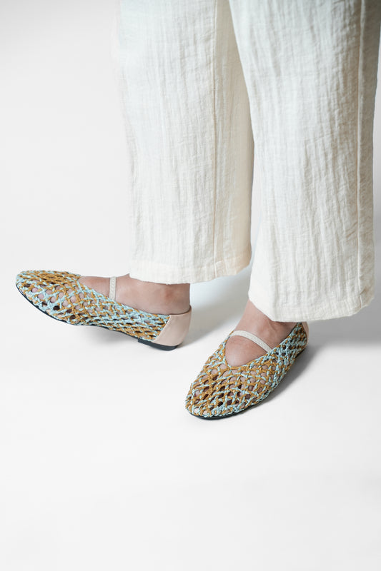 anya Woven Flats Blue & Tan
